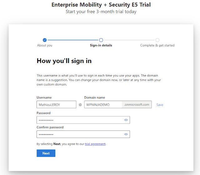 Note : Nous recommandons de souscrire à Microsoft Intune au travers de la suite Enterprise Mobility + Security qui intégre également Azure AD Premium P1 et facilite grandement la gestion des appareils avec Microsoft Intune au travers de fonctionnalités tel que les groupes Azure AD Dynmaqiues ou l'inscription MDM automatique. Azure AD Premium est également un prérequis pour Windows Autopilot. Un indispensable pour les Ninjas !